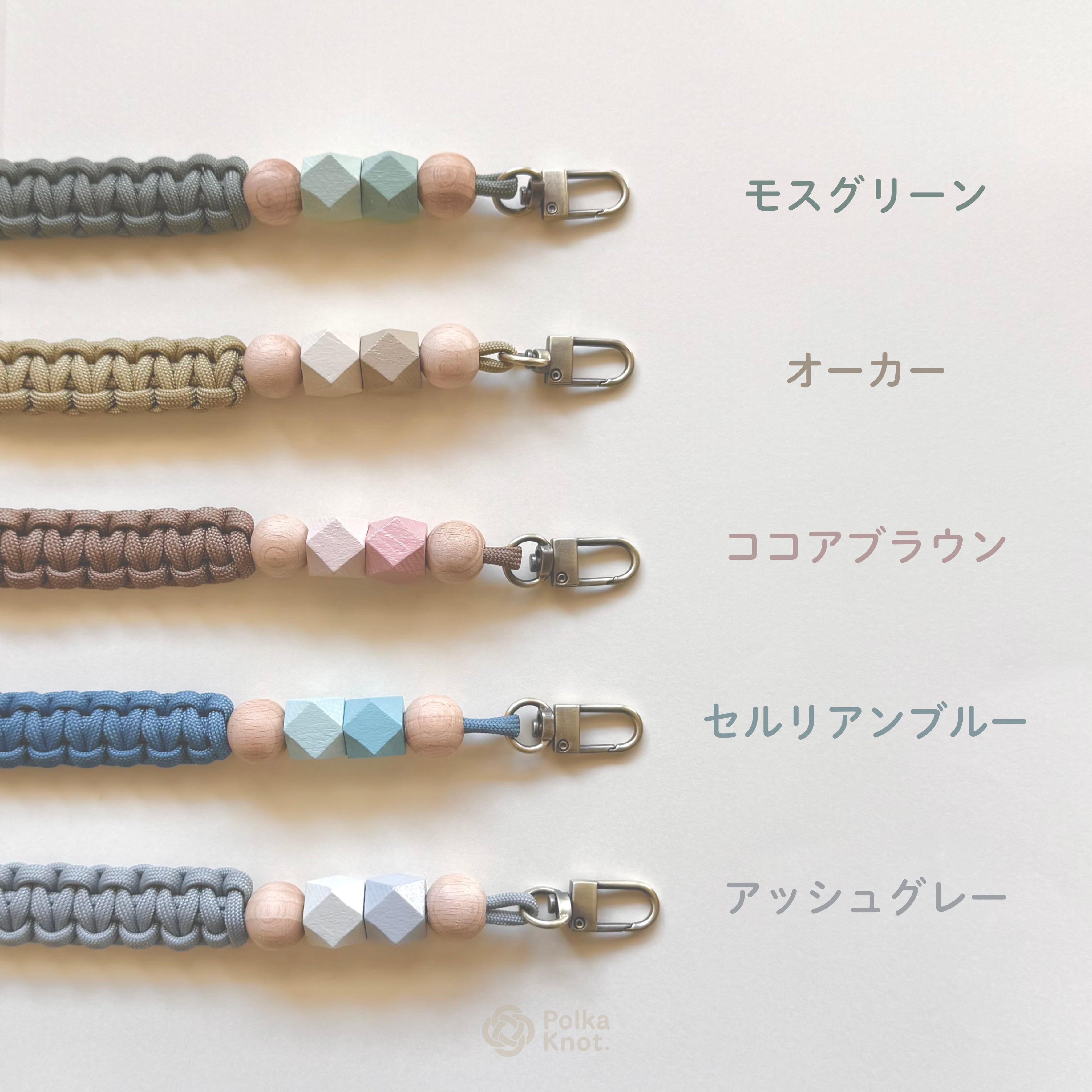 【Knotone Wrist. / ノットン リスト】ウッドビーズが馴染むくすみカラーのハンドストラップ【濃色】